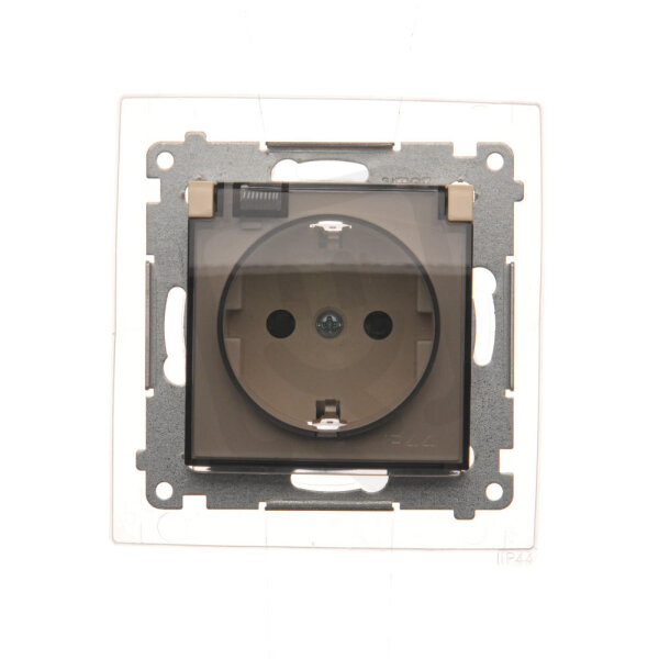 Zásuvka Schuko IP44 s clonkami a těsněním rámečku 16A, 250V~, krémová