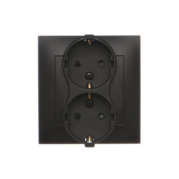 Zásuvka dvojnásobná typu Schuko s clonkami 16A, 250V~, černá matná DGSz2Z/49