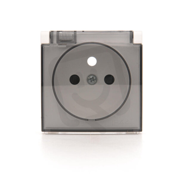 Kryt jednoduché zásuvky s uzemněním, s clonkami - IP44 - průhledné víčko, bílá