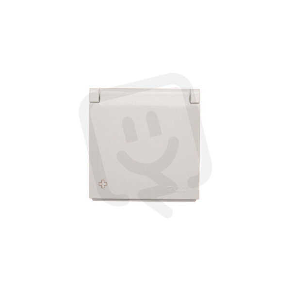 Kryt zásuvky s uzemněním - IP44 - klapka v barvě krytu antibakteriální, bílá