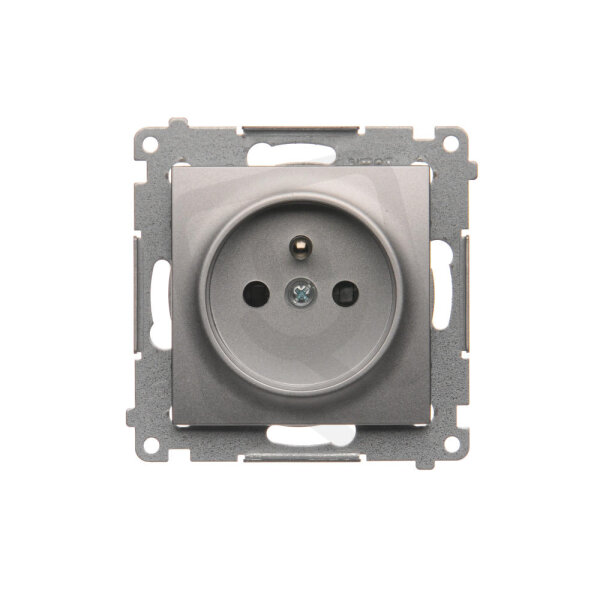 Zásuvka jednonásobná s uzemněním, s clonkami 16A, 250V, stříbrná matná