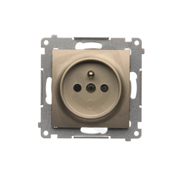 Zásuvka jednonásobná s uzemněním, s clonkami 16A, 250V, zlatá matná