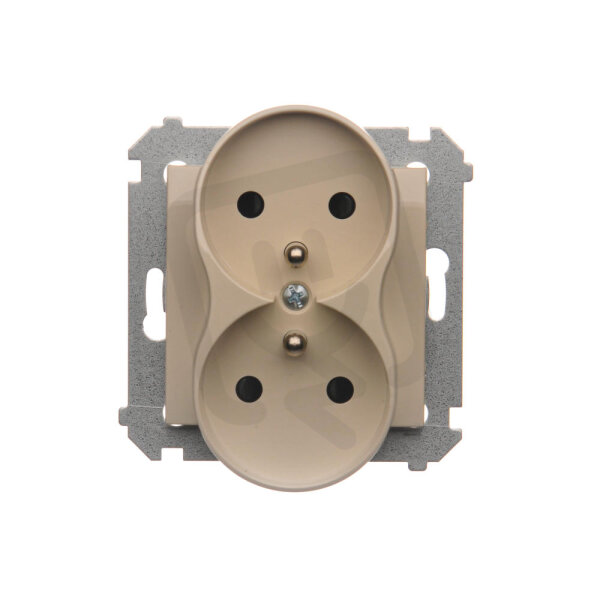 dvojitá silová zásuvka s uzemněním a clonkami - pro rámečky PREMIUM krémová