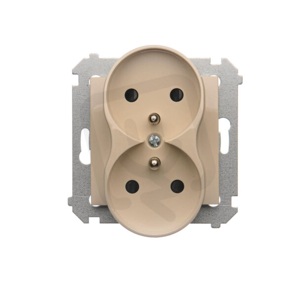 dvojitá silová zásuvka s uzemněním a clonkami - pro rámečky NATURE krémová