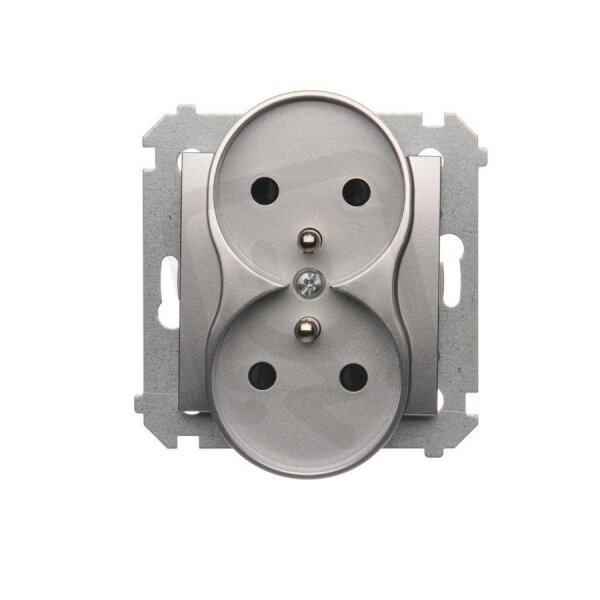 dvojitá silová zásuvka s uzemněním a clonkami - pro rámečky NATURE stříbrná