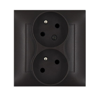 Zásuvka dvojnásobná s uzemněním, pootočená 16A, 250V~, hnědá matná metalizované