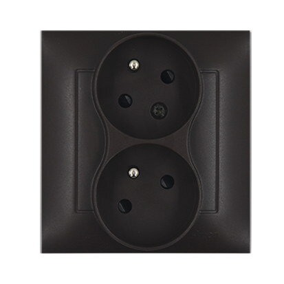 Zásuvka dvojnásobná s uzemněním, pootočená 16A, 250V, s clonkami, hnědá matná