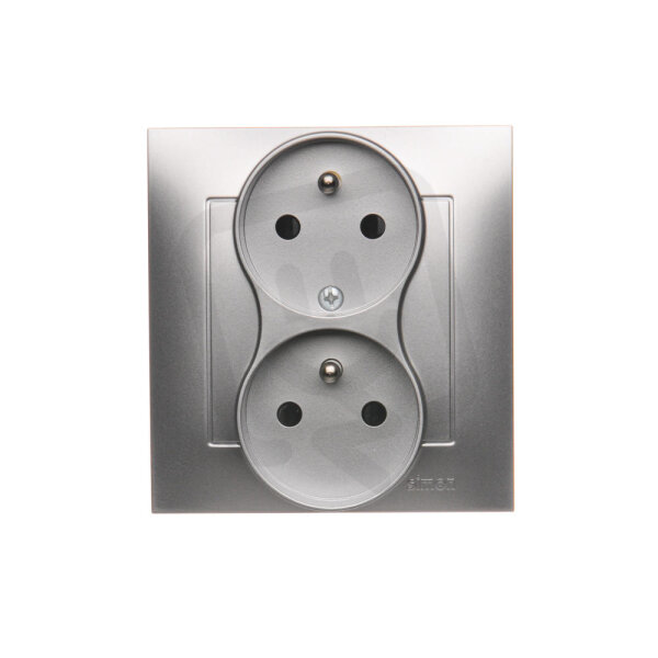 Zásuvka dvojnásobná s uzemněním 16A, 250V~, šroubové svorky,, s clonkami, stříbrná matná metalizované