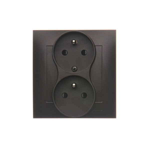 Zásuvka dvojnásobná s uzemněním 16A, 250V~, šroubové svorky,, s clonkami, hnědá matná metalizované