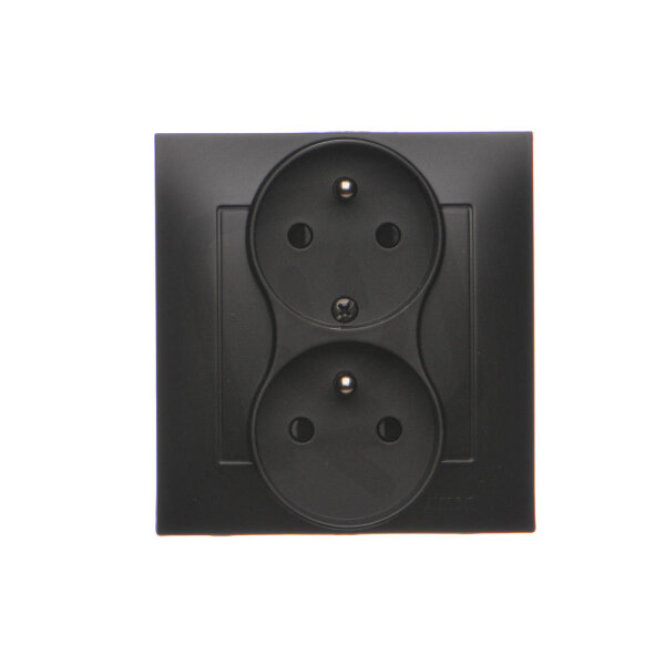 Zásuvka dvojnásobná s uzemněním 16A, 250V~, s clonkami, černá matná DGZ2TZ/49