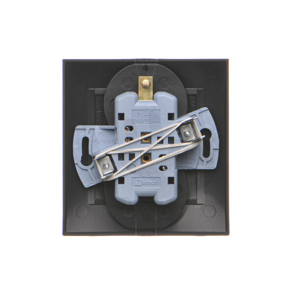 Kontakt Simon (řada Simon 54) dvojnásobná zásuvka s uzemněním, 16 A / 250 V~, se clonkami a provedením ochr. kontakt SCHUKO v černé matné úpravě.