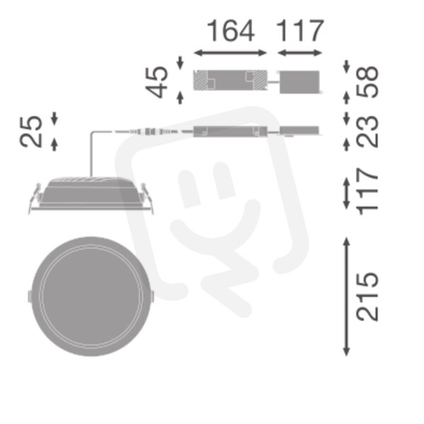 Výbava/příslušenství: Přiloženo je bezpečnostní lanko pro svítidlo. Včetně externího předřadníku. Včetně připojovací krabice s 5 pólovou svorkovnicí. Rámy pro povrchovou montáž jsou k dispozici pouze pro verze DALI D200 a D250. Šedé a černé vyměnitelné kroužky k dispozici jako samostatné příslušenství. Prodlužovací kroužky dostupné jako samostatné příslušenství. Prodlužovací kroužek D190 pro retrofit svítidla D150, prodlužovací kroužek D240 pro retrofit svítidla D200.