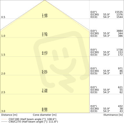 - Vyzařovací úhel.:
