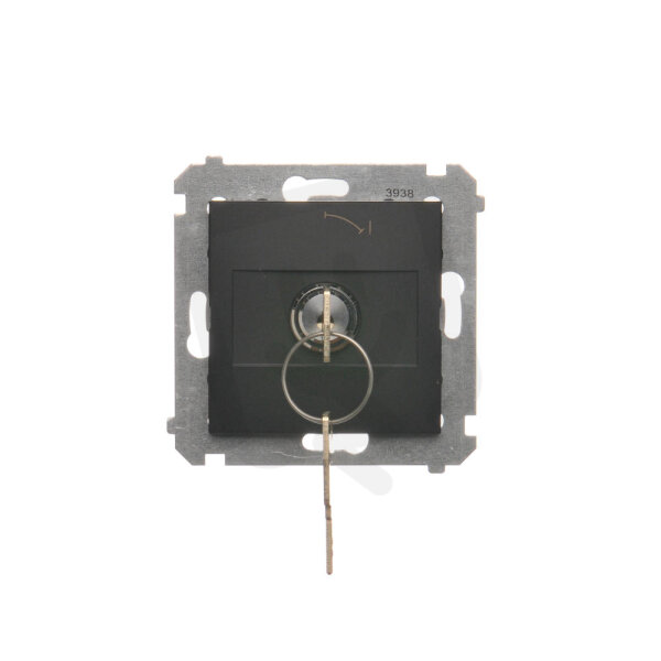 Spínač na klíč pozice '0-I' styk N/O, 5 A, 250~. Možnost vyjmutí klíče pouze v poloze 0, černá matná