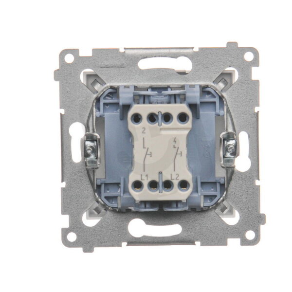 Ovládač zapínací dvojitý, řazení 1/0+1/0, 10AX, 250V~, bez piktogramu,bílá
