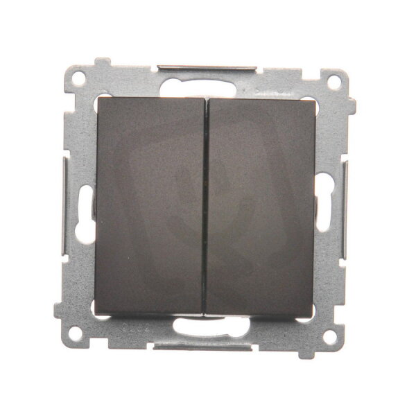 Ovládač zapínací dvojitý, řazení 1/0+1/0, 10AX, 250V, bez piktogramu,hnědá matná