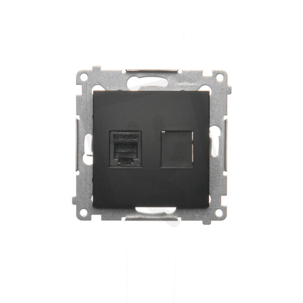 Telefonní zásuvka RJ12 jednonásobná, černá matná KONTAKT SIMON DT1.01/49