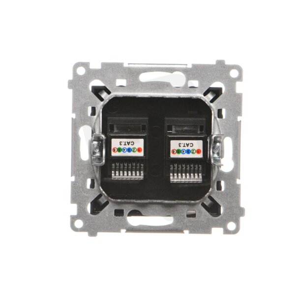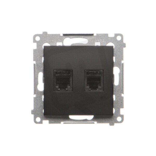 Telefonní zásuvka RJ12 dvojnonásobná, černá matná KONTAKT SIMON DT2.01/49