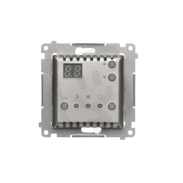 Termostat s displejem, vestavěný senzor teploty, 16(2) A, 230V, stříbrná matná