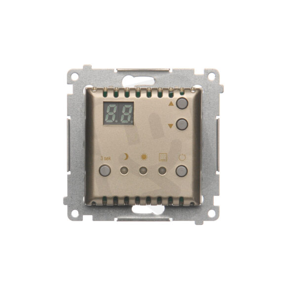 Termostat s displejem, vestavěný senzor teploty, 16(2) A, 230V, zlatá matná