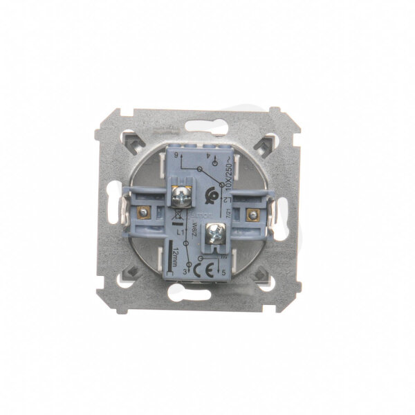 Přepínač dvojitý střídavý, řazení 6+6, 10AX, 250V šroubové svorky,stříbrná matná