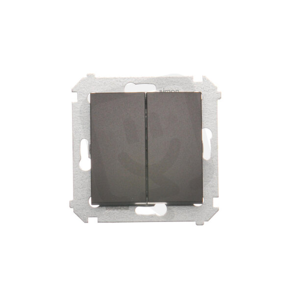 Přepínač dvojitý střídavý, řazení 6+6, 10AX, 250V šroubové svorky,hnědá matná