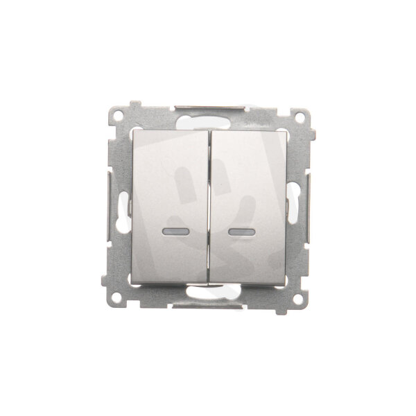 Přepínač dvojitý křížový, s orientačním LED, 7 So, 10AX, 250V, stříbrná matná