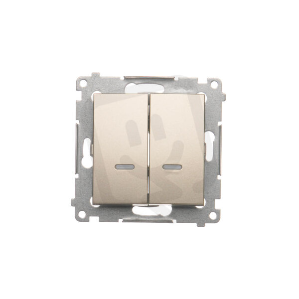 Přepínač dvojitý křížový, s orientačním LED, 7 So, 10AX, 250V, zlatá matná