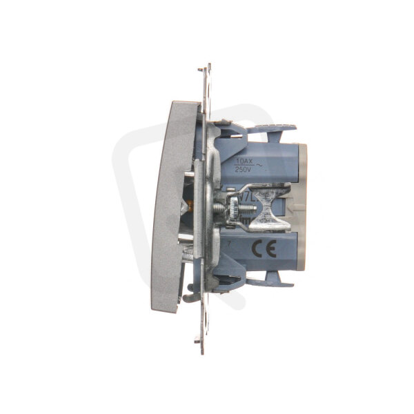 Přepínač křížový, s orientačním LED, řazení 7So, 10AX, 250V, stříbrná matná