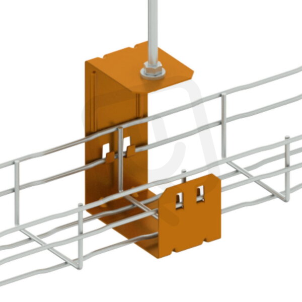 Středový závěs pro zavěšení drátěného žlabu rozměru 60x100 mm ze stropu pomocí jedné závitové tyče, povrchová úprava pozink