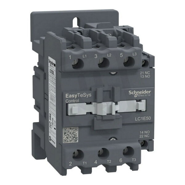 Stykač Easy TeSys Control 3 póly pro motorové aplikace do 50A 30kW@440V. Je vybaven cívkou na střídavý proud a 24V 50/60Hz AC , bez vestavěného pomocného kontaktu, připojením napájení a ovládání pomocí šroubových svorek. Šířka 75 mm pro standardní provozní rychlost až 1200 cyklů za hodinu. Zajišťuje standardní spolehlivost a odolnost s elektrickou životností 0.9 mil. cyklů AC-3 a mechanickou životností 5 mil. cyklů. Může pokrýt pracovní teplotu od -5 °C do 55 °C a montuje se na lištu DIN, bez omezení až do nadmořské výšky 3000 m. Certifikováno více normami (IEC, CCC, EAC) a splňuje požadavky Green Premium (RoHs/Reach).