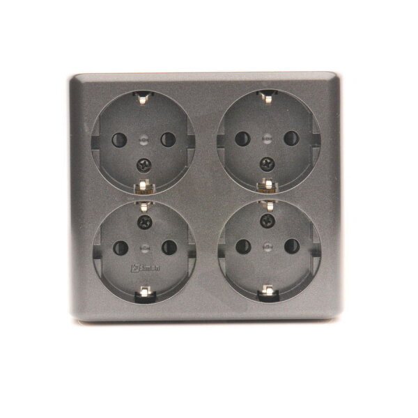 Zásuvka čtyřnásobná typu Schuko na omítku s clonkami, skandinávská verze 16 A, 250 V~, antracit mat, metalizované