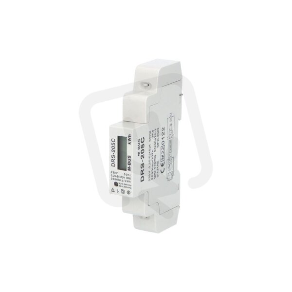 Podružný 1-fázový 1-tarifní digitální elektroměr pro přímé fakturační měření DRS-205C 45A MID, M-BUS, 1mod. Certifikace MID.