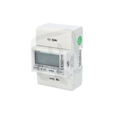 Třífázový elektroměr s LCD displejem pro střídavé napětí 3x230 V / 400 V, 50Hz, slouží k měření činné i jalové elektrické energie v nepřímém zapojení do obvodu. Je určen na podružná fakturační měření spotřeby samostatných spotřebičů nebo spotřebičů ve skupinách (MID certifikace). Elektroměr zobrazuje aktuální napětí i proud v každé fázi, činný i jalový výkon, frekvenci a účiník. Jedná se o přesný elektroměr, který má velký podsvícený LCD display zobrazuje hodnoty na číselníku od 000000,01 až 999999,99 [kWh] a to bez přivedeného napájení po dobu až 20ti let (záleží na okolním prostředí), zobrazené naměřené hodnoty nelze vymazat. Indikační LED bliká při odběru fáze. Elektroměr má impulzní výstup (3200imp. / 1kWh ==>) na svorkách S0+ a S0-. To umožňuje připojení externího zařízení, které počítá impulzy (S0 dle normy DIN 43864) generované elektroměrem. Ke správné funkci elektroměru se nevyžaduje zapojení tohoto doplňkového zařízení. Montuje se na nosnou lištu 35 mm (DIN lištu), vestavná šířka jen 76 mm (4,5 mod.) -> šetří prostor v rozváděči. Šroubové svorky pro pohodlné připojení vodičů až do průřezu 35 mm2, svorky pro nulový vodič "N" jsou vzájemně (galvanicky) propojené a není nutné rozdělovat "N" vodič. Vlastní spotřeba je max. 2W / 10VA / fáze.