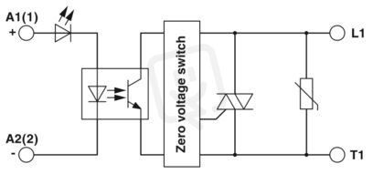 1fázový polovodičový stykač, vstupní napětí: 24 V DC, výstupní proud: 30 A, spínač při průchodu napětí nulou