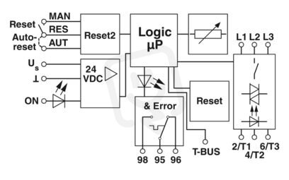 Hybridní spouštěč motoru jako alternativa klasického zapojení stykače. Spouští 3~ AC motory do 9 A a poskytuje ochranu motoru. Možnost napájení a rozšíření o relé přes konektor sběrnice na nosnou lištu.