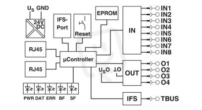 Brána pro připojení až 32 systémových účastnických zařízení rozhraní přes PROFINET k nadřazené řídicí jednotce. Systémová účastnická zařízení rozhraní se k bráně připojí pomocí konektorů sběrnice na nosnou lištu, které jsou součástí dodávky.