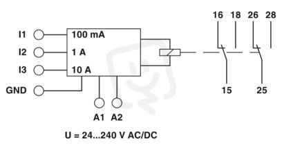 Dohledové relé pro dohled 1fázových proudů 0...10 A AC/DC, podproudu/nadproudu nebo Window, chybové paměti, síťový napáječ se širokým rozsahem, 2 přepínače