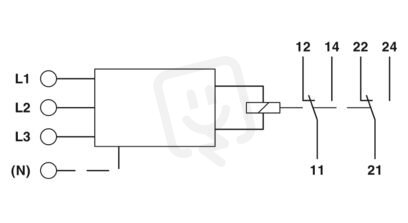 Dohledové relé pro dohled sledu fází, výpadku fází a asymetrie, 342 ... 457 V AC, napájení z měřicího napětí, 2 přepínače