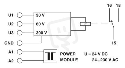 Dohledové relé pro dohled 1fázových napětí 0...300 V AC/DC, podpětí, napájecí napětí volitelné přes síťový modul, 1 přepínač