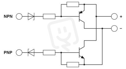 Modul invertoru. Modul invertoru invertuje signály výstupů tranzistorů NPN spínajících zem do kladně spínajících výstupů PNP, jakož i signály spínající PNP do spínajících NPN signálů.