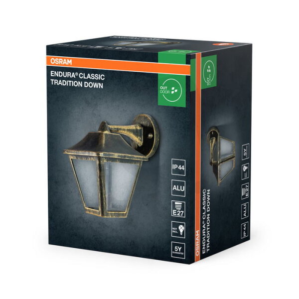 ENDURA CLASSIC TRAD DOWN ALU E27 GD OSRA najdete v kategoriích Svítidla, Stropní a nástěnné svítidlo, Svítidla, světelné zdroje a LED osvětlení, výrobce Osram, EAN 4099854452352, kód dodavatele 4099854452352. ENDURA CLASSIC TRADITION ALU Down E27 Gold LEDVANCE 4099854452352 nabízíme od 1 ks. Kód EMAS ENDURA CLASSIC TRAD DOWN ALU E27 GD OSRA je ELOSOS1985422.