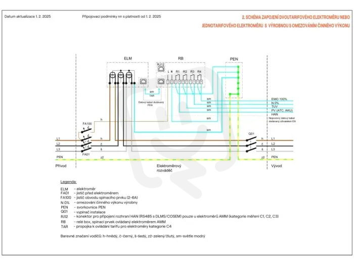 Uspořádání měřící/regulační soustavy | dvoutarifní třífázový |