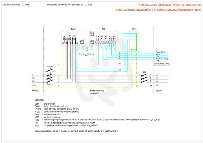 | Elektroměrový rozváděč | jednotarifní / dvoutarifní |