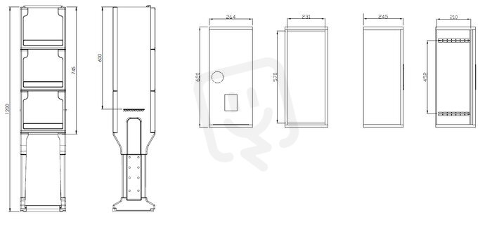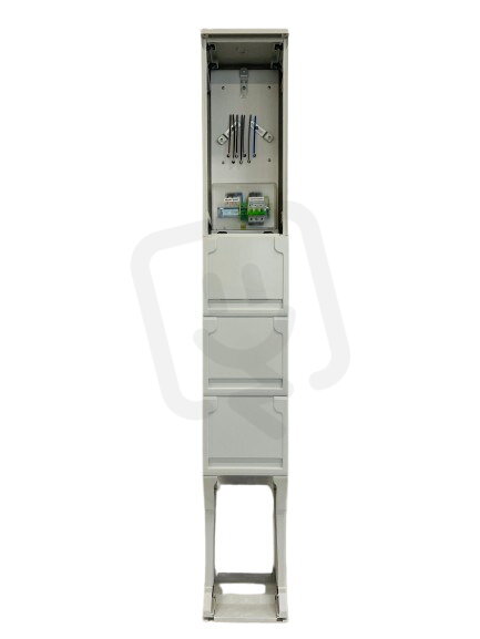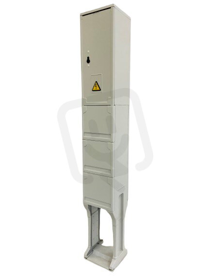 Skříně jsou vyrobeny v celoplastovém provedení z termosetu z SMC-prepreg materiálu, který je odolný proti povětrnostním vlivům, vodě a UV zářením. Prodloužení životnosti je navíc zajištěno UV ochranným nástřikem v barevném odstínu RAL7035. Materiál nepodléhá korozi, zachovává tvar, je nesnadno hořlavý kategorie B a samozhášivý. Vnitřní výzbroj jednosazbová slouží pro měření spotřeby el. energie. Obsahuje nastavitelný držák elektroměru, svorkovnice PEN, vypínač 63A 3P pro vývod max.16mm2, plombovatelný kryt a místo pro hlavní jistič. Silové vodiče jsou jednotné o průřezu 6mm2 pro osazení hlavního třífázového jističe do 40A.