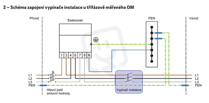 | Způsob připojení vývodu | vypínač 63A 3P |