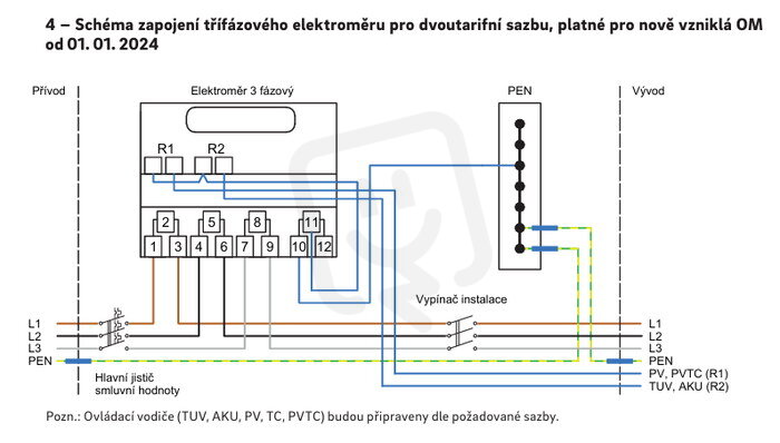 | Elektroměrový rozváděč | dvoutarifní/jednotarifní |
