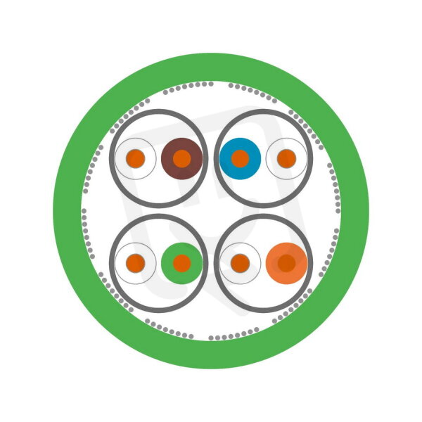 Pro pevné uložení v síti PROFINET (typ A), díky konstrukci vodiče s plným jádrem. Vhodný také pro aplikace EtherCAT a EtherNet/IP. Lze použít v suchých, vlhkých a mokrých prostorech. Všestranné použitelný v závislosti na materiálu pláště. Rychlá výměna informací pomocí ethernetové technologie. . Cat. 6A výkon do 10 Gbit/s. Pro přenos analogových a digitálních signálů ve frekvenčním rozsahu do 600 MHz. K dispozici s robustním vnějším pláštěm z PVC, vnějším pláštěm z PUR odolným proti oděru nebo bezhalogenovým vnějším pláštěm FRNC. Ideální ochrana proti elektromagnetickému rušení díky stínění párů pomocí hliníkem kašírované fólie a měděného stínicího opletu jako celkového stínění (S/FTP). .