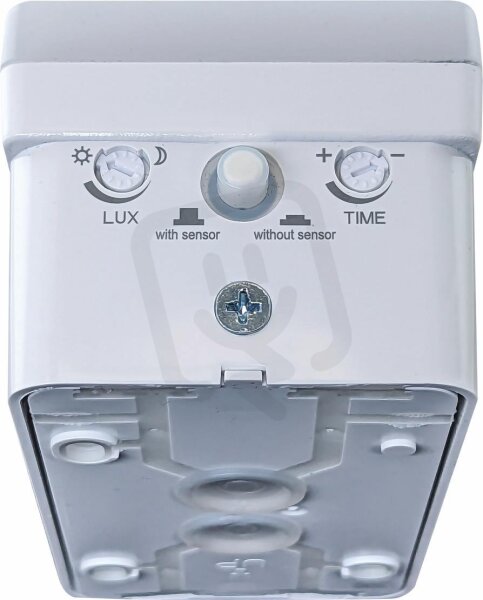 Na spodní straně svítidla se nacházejí snadno dostupné regulátory s možností regulace času (TIME) a nastavení NOC/DEN (LUX). K dispozici je i vypínač, kterým lze deaktivovat funkci PIR čidla.