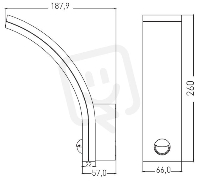 Svítidlo je vybaveno infračerveným (PIR) čidlem s dosahem až 9m.